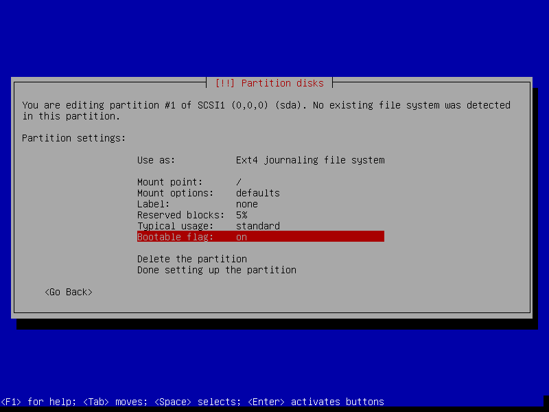 “free space” kemudian enter dan “create new partion” dan buat dari 21.5 GB menjadi 19GB dan “Bootable” harus “ON”