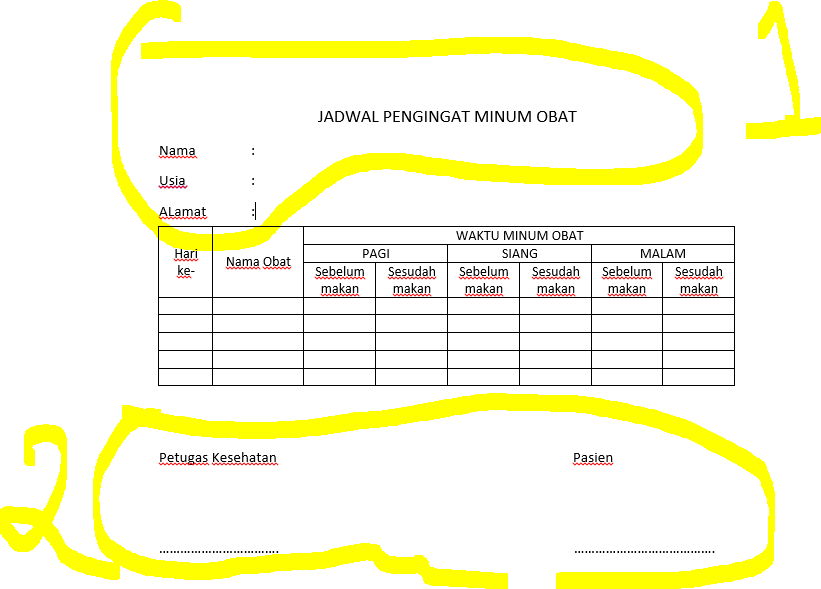 Download Jadwal Pengingat Minum Obat (File docx) disini.