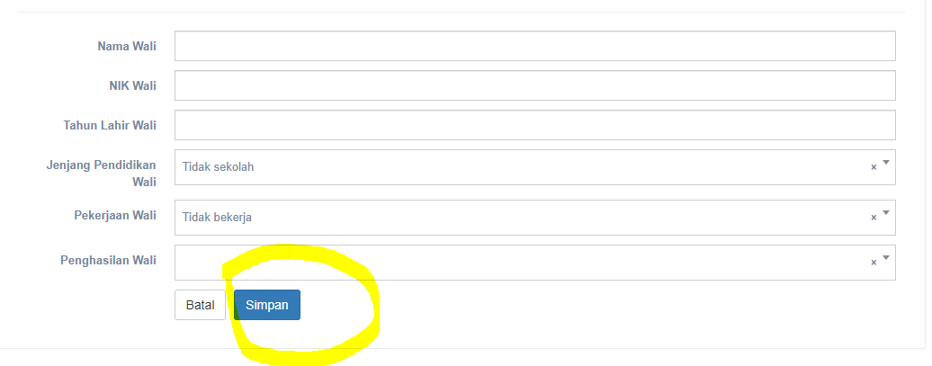 Penjelasan: Dibagian pengisian data seperti pada gambar di atas, Tanda (*) merupakan tanda jikalau kolom tersebut WAJIB di isi. - Setelah semuanya di isi, Klik Tombol SIMPAN di bagian bawah