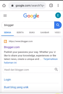 2. Buka aplikasi Google Chrome dan Ketikan “Blogger” seperti pada gambar di bawah ini