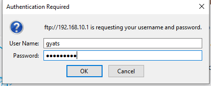 9. Untuk menjalankan FTP rubah ip di Loopback adapter pc kalian dengan gateway ip server Ftp kalian. Kemudian Buka ftp menggunakan aplikasi browser dengan mengetikan “ ftp://192.168.10.1” maka akan muncul dan masukan user kalian