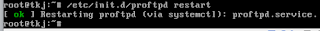 8. Restart konfigurasinya dengan perintah ‘ /etc/init.d/proftpd restart” sampai “OK” jikamasih failed perikasa kembali penulisan kata biasanya ada yang terlewat.
