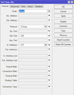 2. Jika sudah, kemudian masuk ke “ Ip à firewall à nat “ add