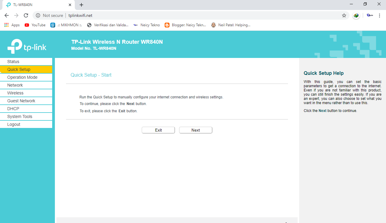 4. Untuk membuat settingan dengan cepat kita bisa menekan “ Quick setup “ dan ikuti alurnya