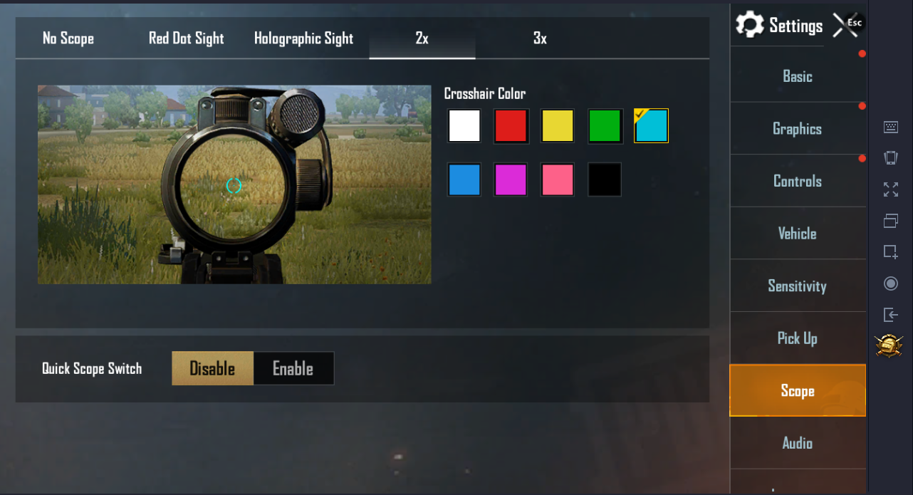 disana semua ukuran scope bisa di ganti warna titik tengahnya, yang bisa membuat sebagian orang jadi enak melihatnya atau mengukur arah tembakannya.