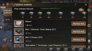Disetiap harinya ada misi yang harus di selesaikan dan ada juga misi yang dilakukan secara bertahap yang artinya kita bisa melaksanakan misi kapanpun (disesuaikan dengan level dan kemampuan) dan tentunya kita akan mendapatkan hadiah setelah menyelesaikan misi ini.