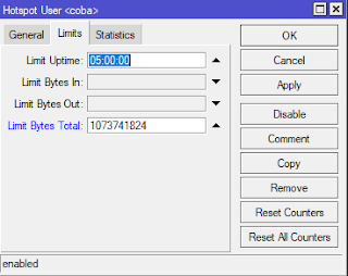 voucher hotspot MikroTik dengan limitasi waktu dan Data Down/Up tertentu