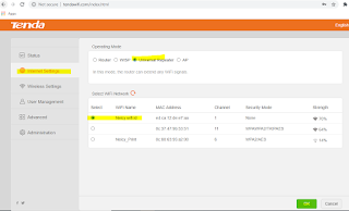 pada tab “ Internet Setting “ kemudian pilih “UniversalRepeater” karena kita akan