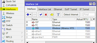 dan wlan, caranya masuk menu “ interface > klik Ethernet “