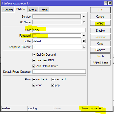 Ether1 = ISP-PPPoE