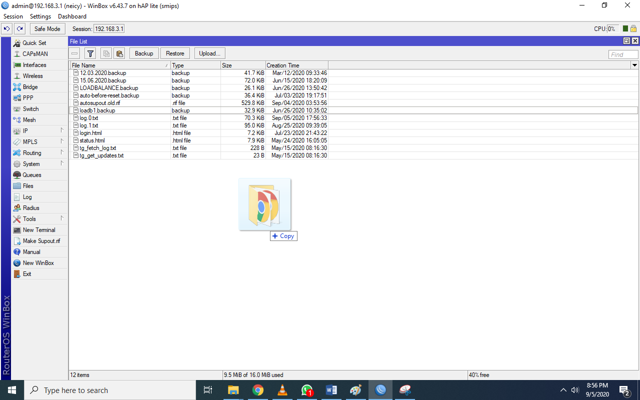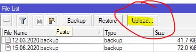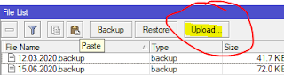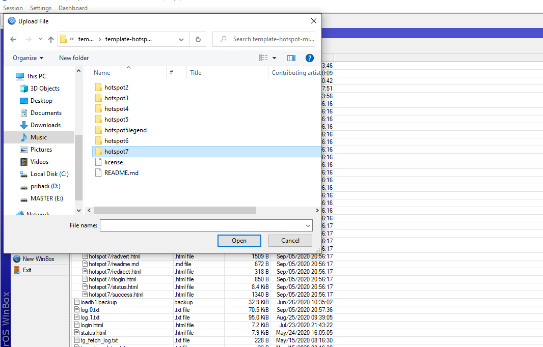 Aplikasi WinBox kemudian masuk pada menu “ file” pilih “ upload “ dan arahkan