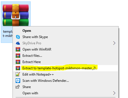 Extract file terlebih dahulu file tersebut caranya “ klik kanan file tsb à Extract to template –hotspot..”