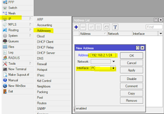 2. PC : Masuk ke menu “IP > Addresses > Add“