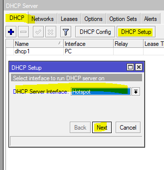 Menambahkan DHCP Server Untuk Interface PC & Hotspot
