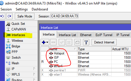Klik Ether3 > name = Hotspot