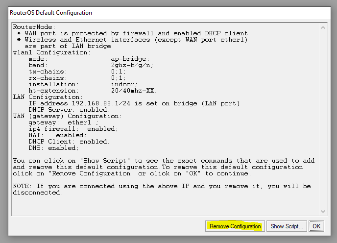 seperti ini tekan “ Remove Configuration “