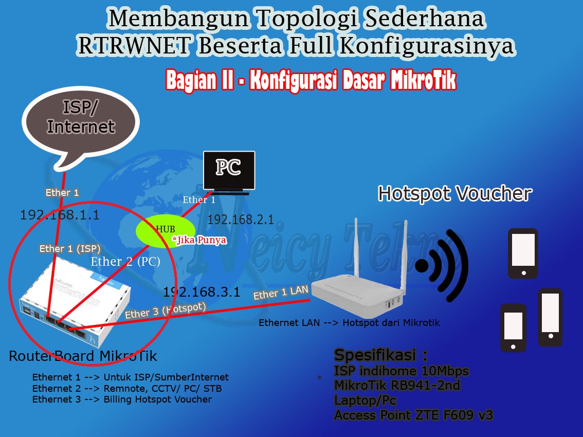 RTRWNET Sederhana. Disini kita akan membuat konfigurasi dasar mikrotik