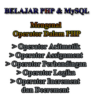nah sedikit penjelasan di atas merupakan operator-operator dalam PHP, yang pada dasarnya operator ini harus di ketahui dan di pahami oleh kalian yang sedang belajar PHP dan MySQL, Pelajari juga mengenai pengertian-web-server-http-logging .
