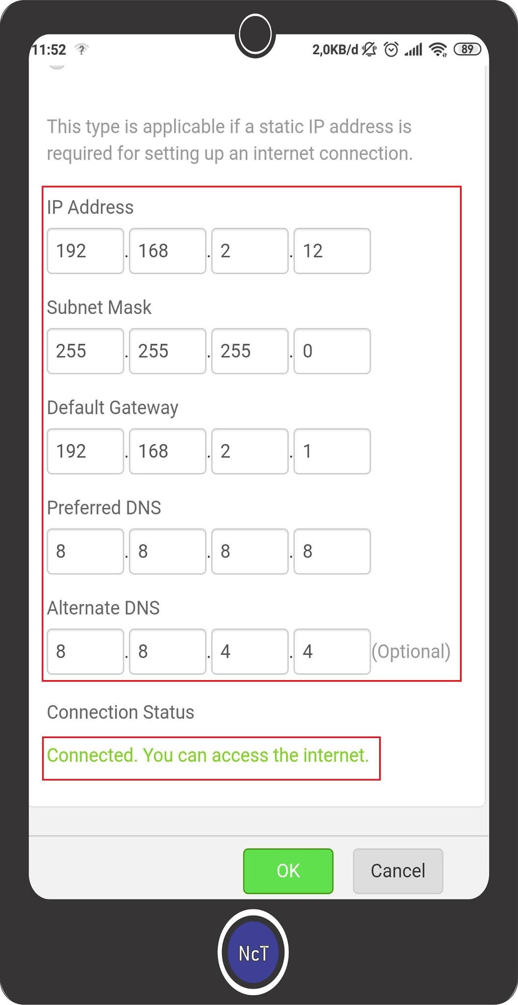 Ip Address = 192.168.2.12 (bebas asal jangan merubah 192.168.2.)