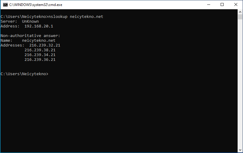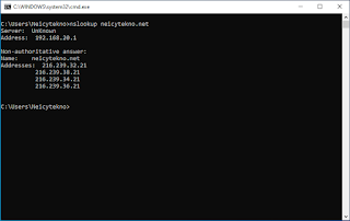 ketikan “nslookup neicytekno.net”.