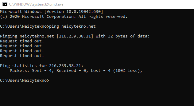 jika kita tes ping ke necytekno.net maka RTO (Request Time Out) atau tidak