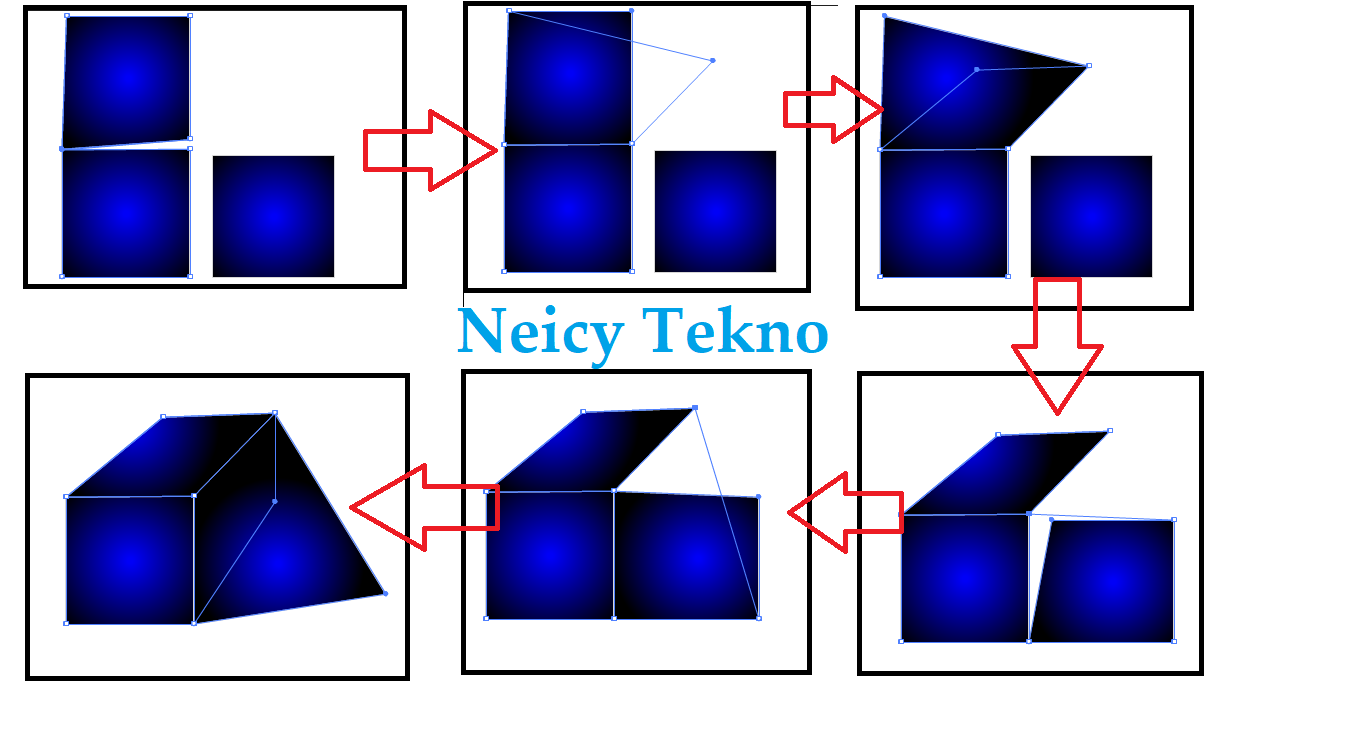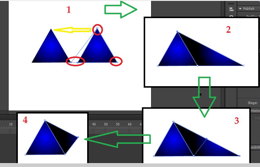 - Buatlah 2 bentuk Segitiga, Kemudian ikuti langkah-langkah pada gambar di bawah ini :