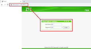 gateway dari ip modem ZTE F609 yaitu 192.168.1.1 (hard-reset modem jika sulit