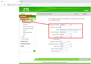 Baca Juga : Setting Modem ZTE F609 Indihome Basic Wlan dan Lan Untuk Access Point Pararel