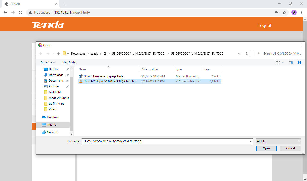 instalasinya untuk mengupgrade firmware dari tenda 03 secara ofline.