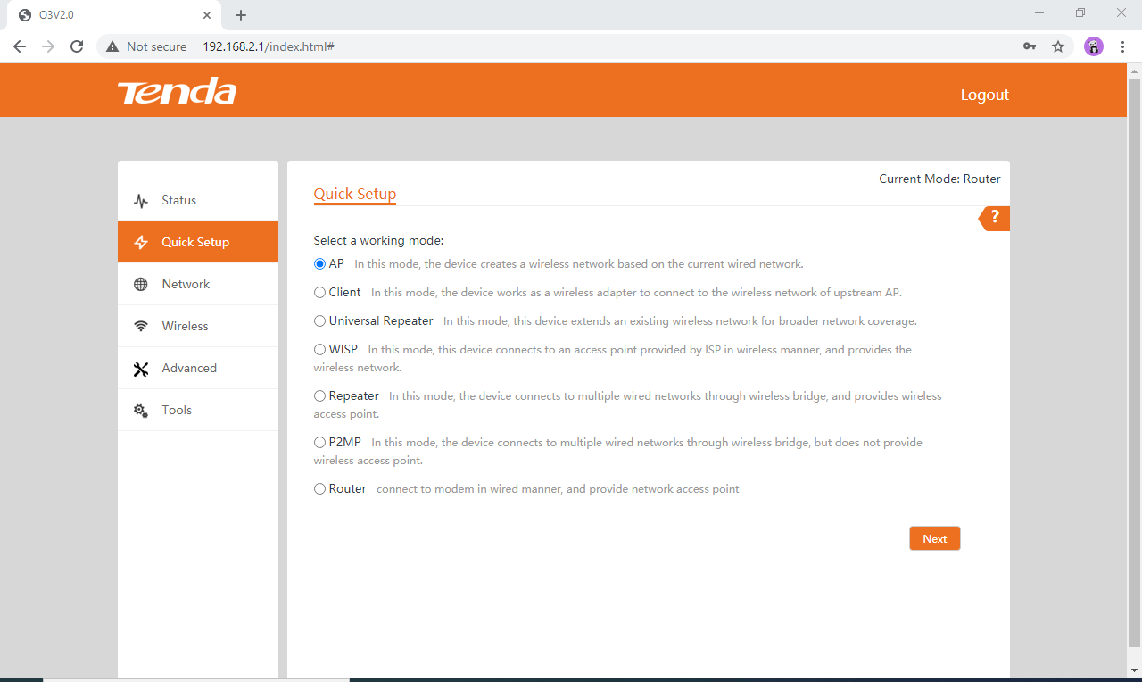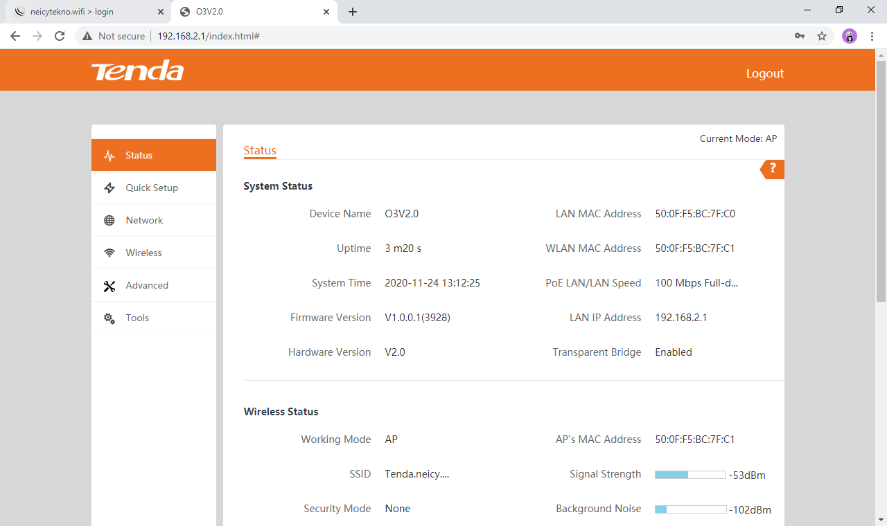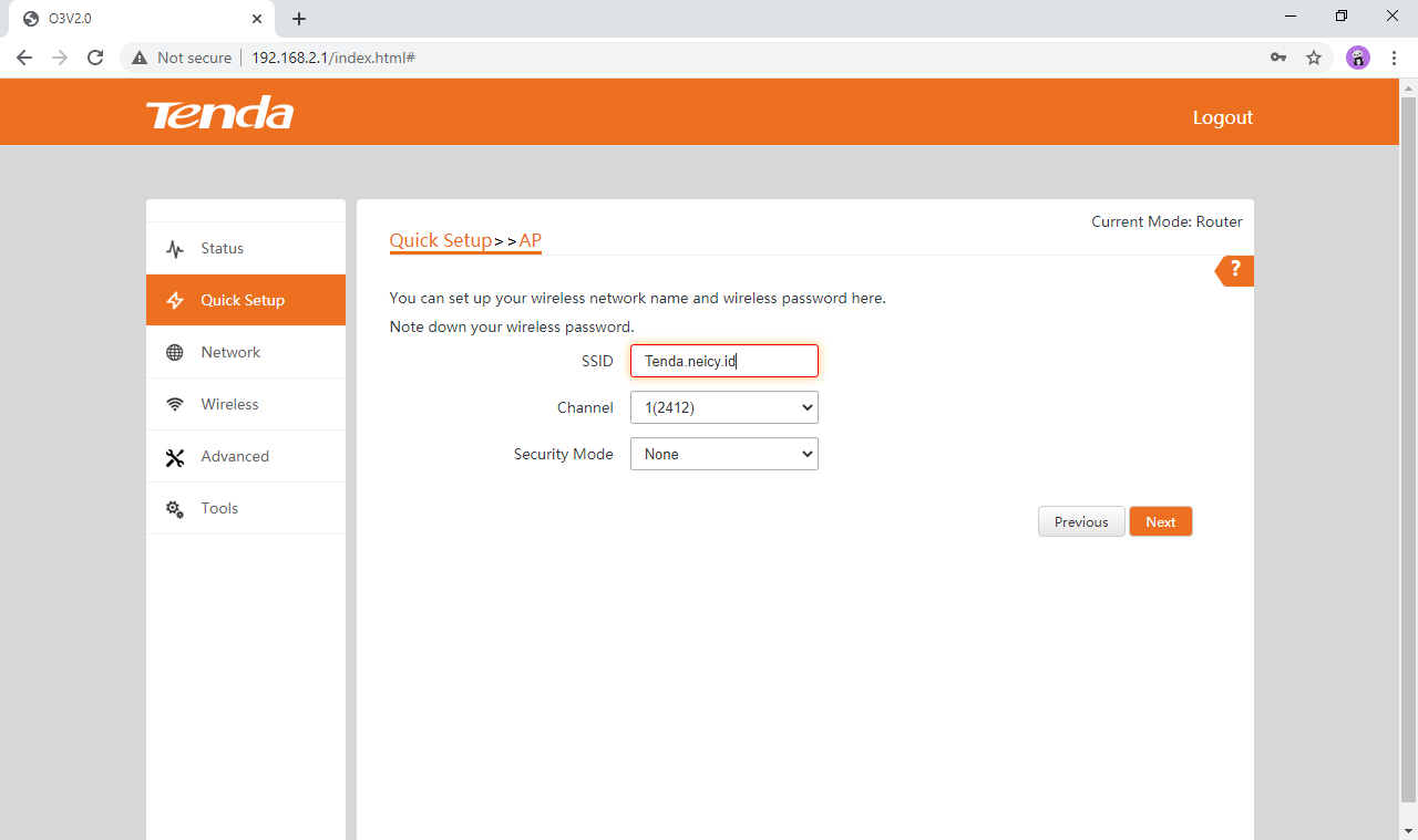 tenda 03 yaitu 192.168.2.1 di kolom URL.