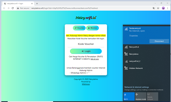 laptop ke jaringan wifi tenda, hasilnya akan otomatis di redirect ke login page