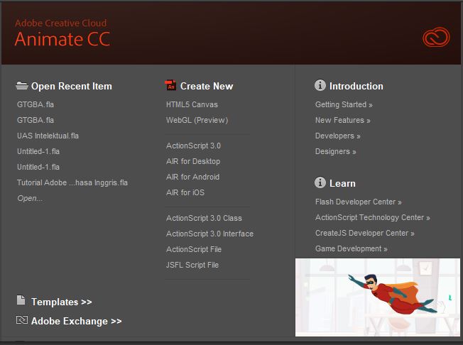 Tutorial Dasar Adobe Animate ini diperlukan oleh kamu yang baru memulai menggunakan aplikasi adobe animate cc, namun untuk kamu yang telah menggunakan adobe Flas professional AS3 mungkin akan lebih mudah untuk memahami materi ini karna isi dari aplikasi adobe animate cc tidak jauh berbeda dengan adobe flash atau versi sebelumnya dari adobe animate CC ini.