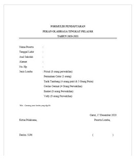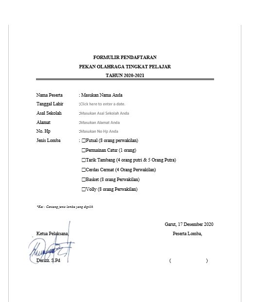 Download Contoh Formulir Pendaftaran Lomba Secara Digital/Online (File docx) disini.