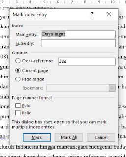 - Pilih Istilah atau kata yang akan di jadikan entry dalam indeks