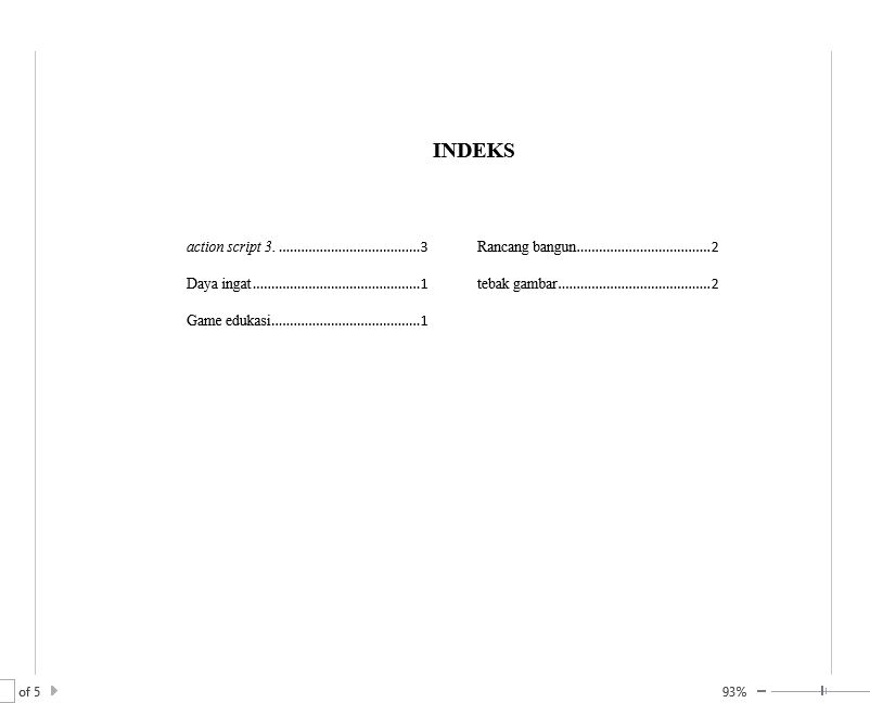 - Ketikan Judul Halaman, Sebagai contoh “INDEKS“, Kemudian Enter ke bawah (beri jarak)