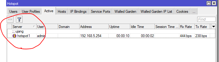 langsung terhubung dengan server hotspot/internet. Cara nya masuk menu “ip—hotspot—ip