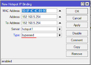 Ip binding merupakan salah satu fitur hotspot mikrotik yang