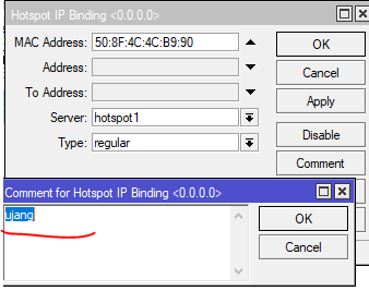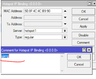 berdasarkan pemiliknya menggunakan fitur comment. Caranya masuk menu “ip—hotspot—ip