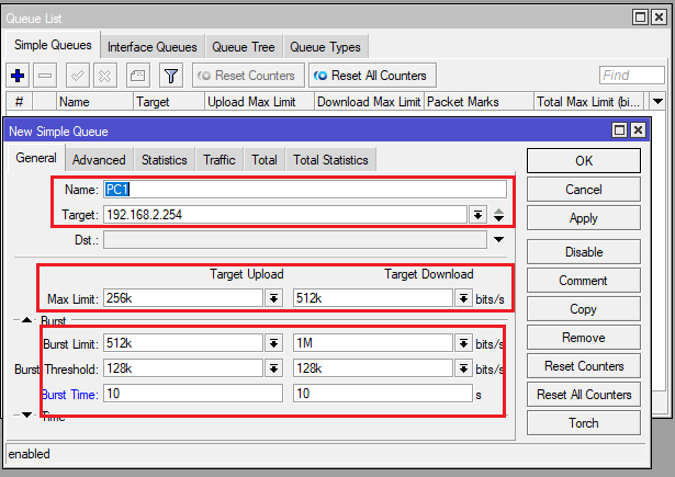 yaitu 128kbps. Intinya Burst Limit harus lebih besar dari max-limit.