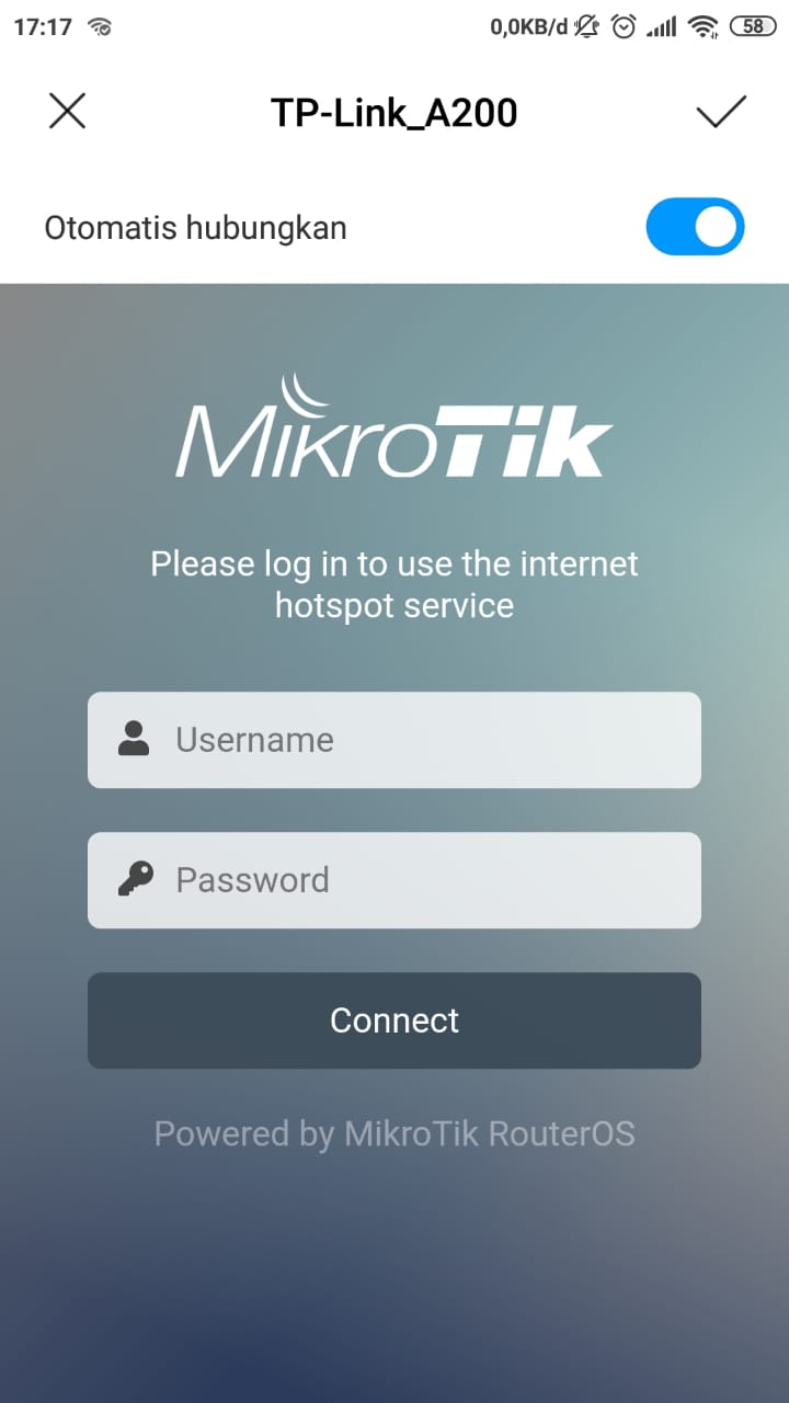 voucer terlebih dahulu yang berisi username dan password untuk login hotspot