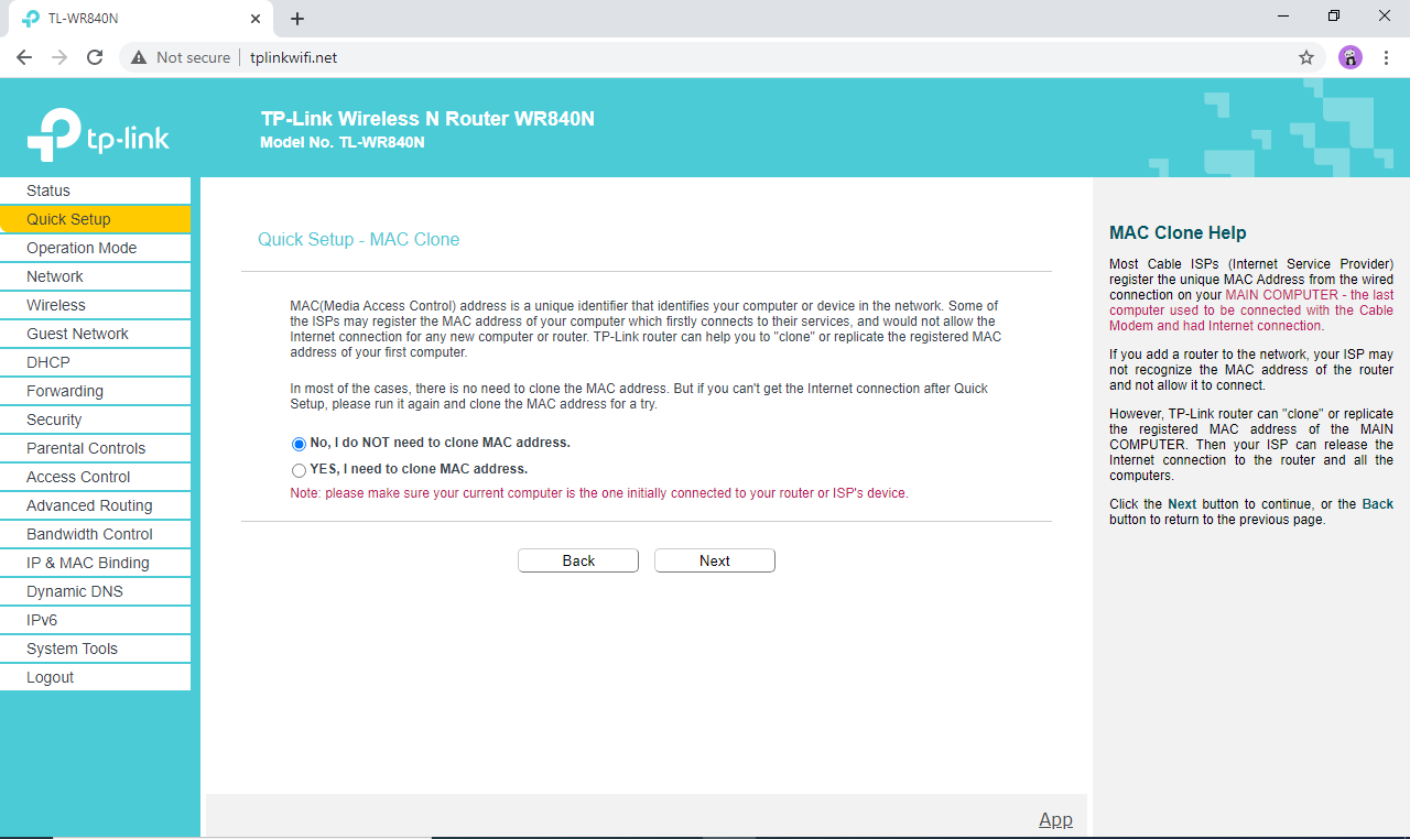 mac address router atau tidak. Pilih salah satu saja kemudian tekan “next”