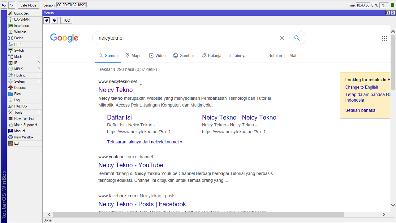 router mikrotik yang kita gunakan sudah terkoneksi dengan internet. Kemudian buka
