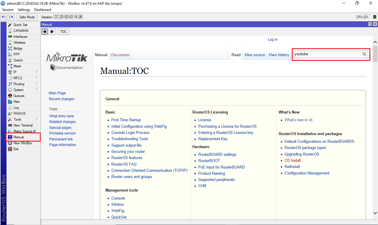 panduan menggunakan mikrotik seperti ini. Lalu ketikan “youtube” di kolom pencarian dan tekan “enter” atau klik icon kaca