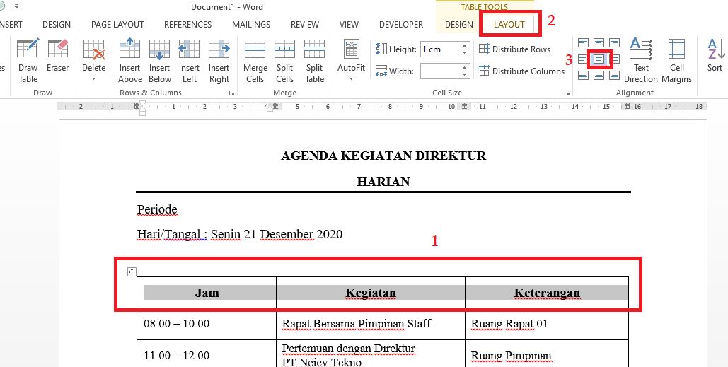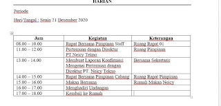 Langkah-Langkah Membuat Agenda Harian Di Ms Word :