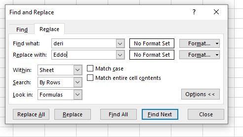 *Replace, Digunakan untuk mengganti 1 Nama/Data yang di Find - Setelah selesai merubah nama atau data, Klik Close