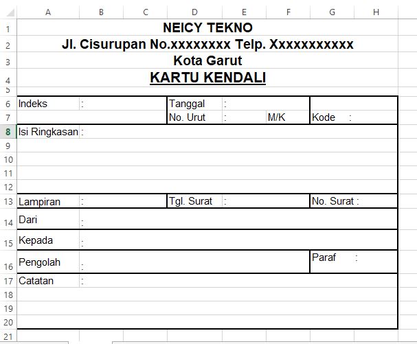 Contoh Format Kartu Kendali di Excel