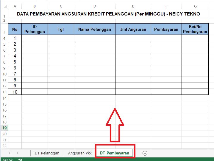 Contoh Hasilnya : - Buat Sheet baru, Kemudian beri nama Sheet nya “DT_Pembayaran”