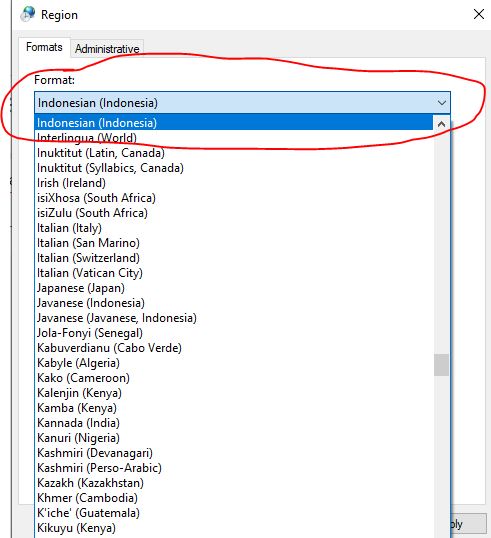 2. Ubah settingan Bahasa dengan melakukan Klik Drop-Down Bagian Format dan kemudian Pilih Indonesia (Indonesia).