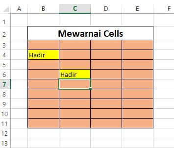 - jadi ketika kamu memasukan Data “Hadir” maka cell nya akan berubah warna sesuai dengan warna yang telah di tentukan.