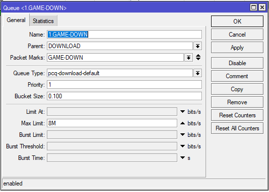 queue tree add name=1.GAME-DOWN packet-mark=GAME-DOWN parent=DOWNLOAD priority=1 max-limit=8m queue=pcq-download-default